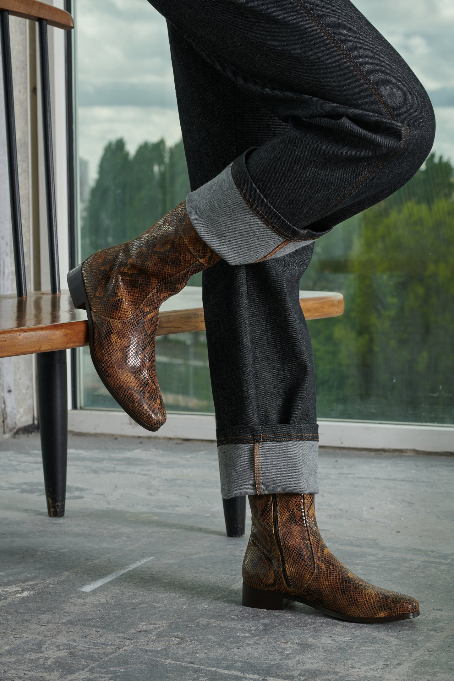 Bottines en cuir façon python python