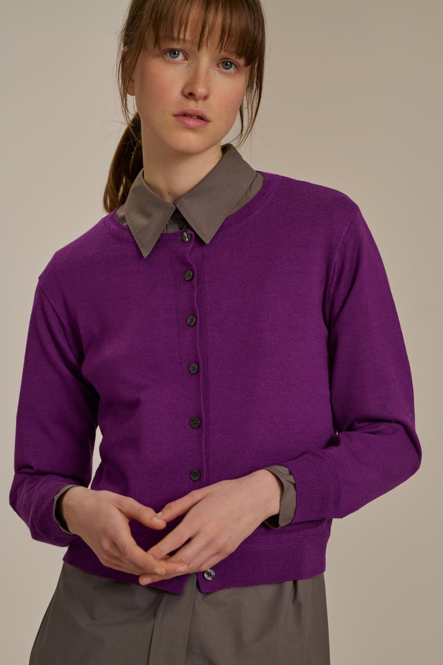 TITA est un cardigan court et carré. Il est tricoté dans une laine mérinos fine et douce à porter à même la peau ou en superposition. Les manches et le bas de corps sont tricotés dans un point fantaisie qui lui ajoute une touche d'originalité. Il accompagnera aussi bien un jean taille haute qu’une jupe épurée.