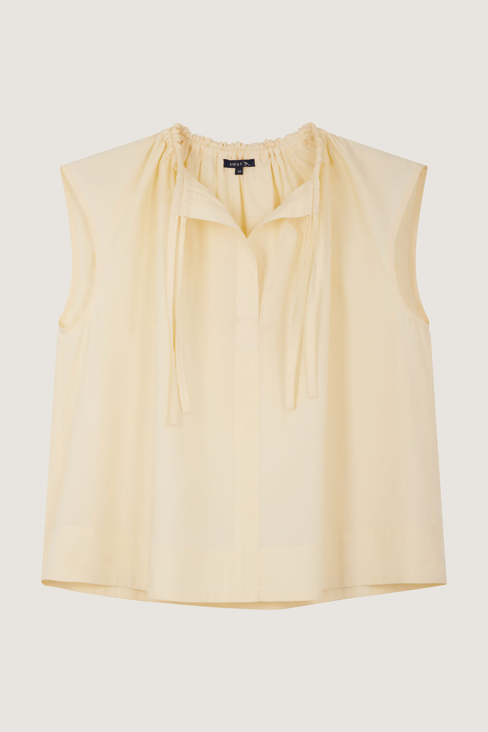 - Encolure froncée et dégagée ajustable par deux liens de serrage