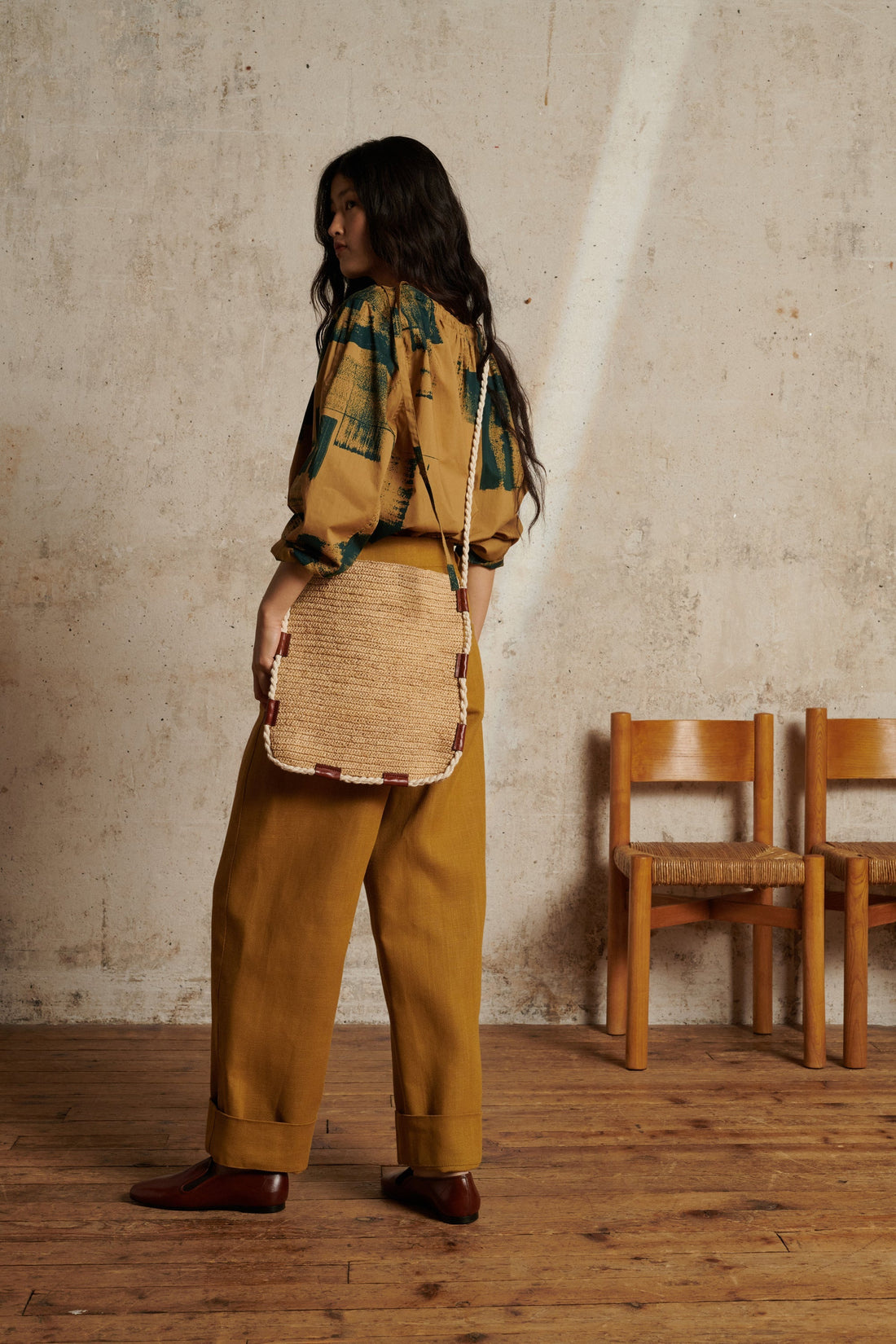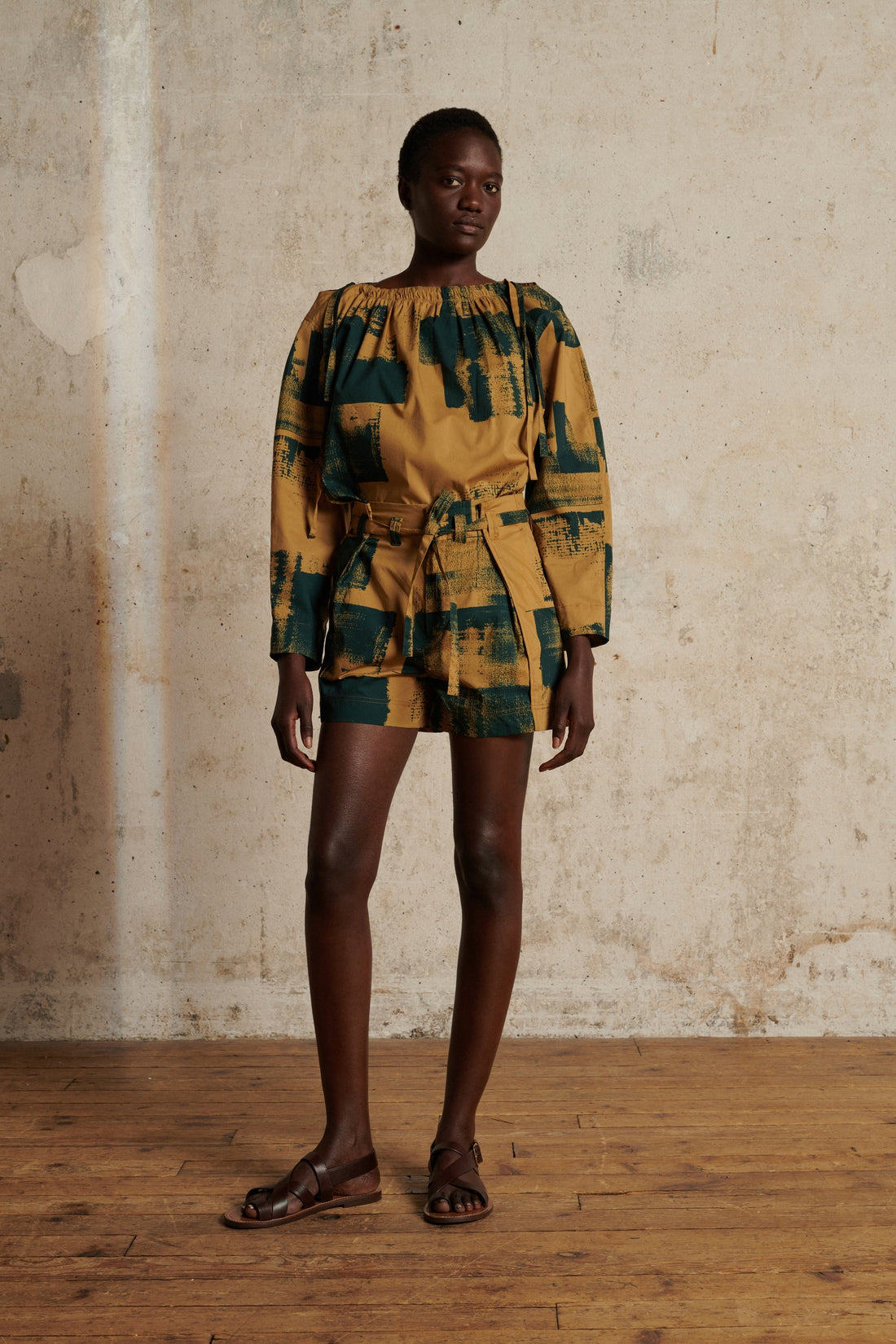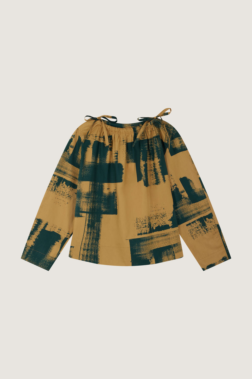 chemise uki Blouse en popeline de coton imprimée bleue et beige