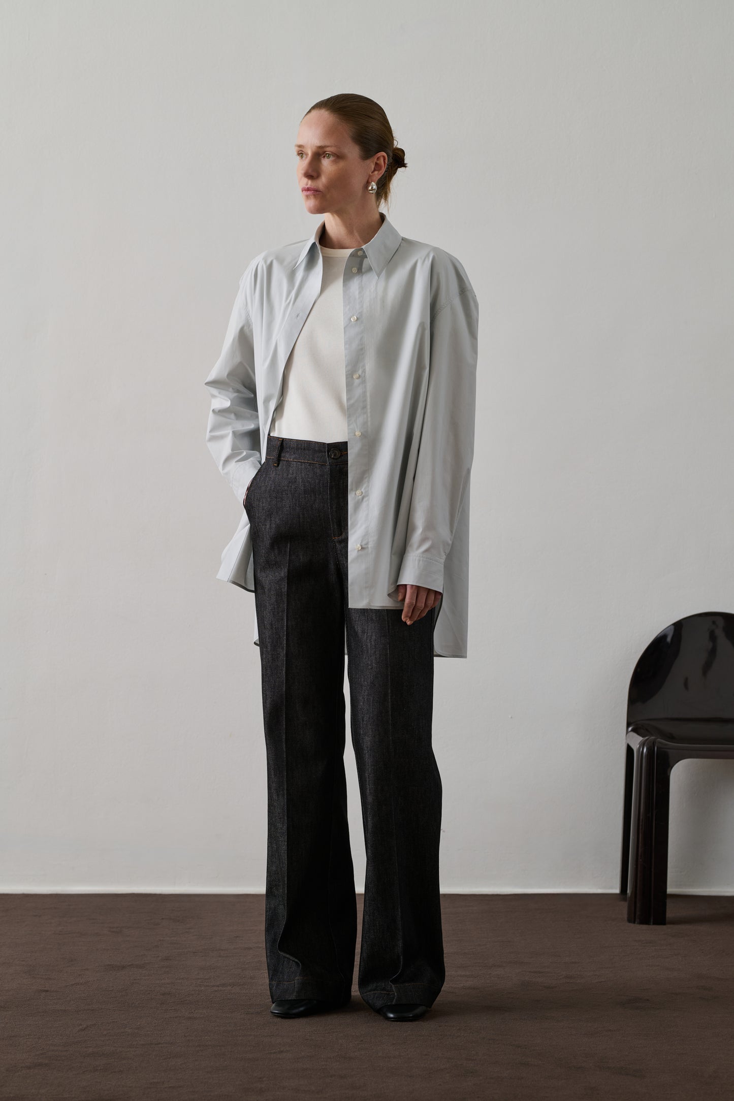 CALIFORNIA est un jean intemporel du vestiaire Sœur, à la coupe large et évasée. Sa taille est haute, il parfait une allure féminine et élancée.