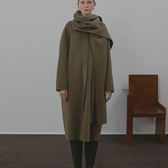 - Grande écharpe intégrée, amovible grâce aux boutons