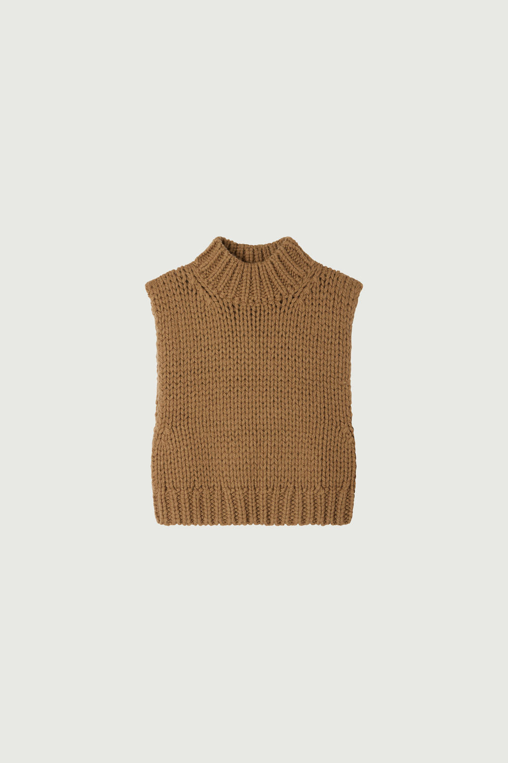 BRETT est un pull sans manches en laine, parfait pour jouer sur les superpositions. Sa maille épaisse lui donne un effet tricoté main. En fil de laine vierge, il se porter autant à même la peau, qu'en superposition pour réchauffer une tenue. Sa couleur camel se porte facilement avec tout.