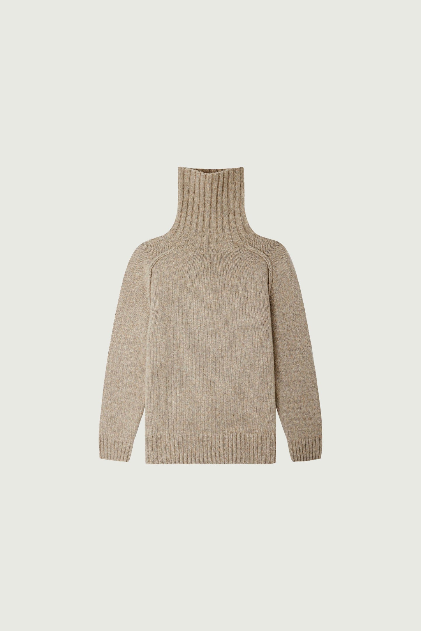 WINDY est un pull col roulé en laine mélangée. Des coutures retournées soulignent l'emmanchure marteau. Son col montant à côtes a été volontairement allongé pour lui donner une allure singulière. Possibilité de roulotter ou de plier le col selon les envies. Son volume court et près du corps permettra de le glisser facilement dans un pantalon.