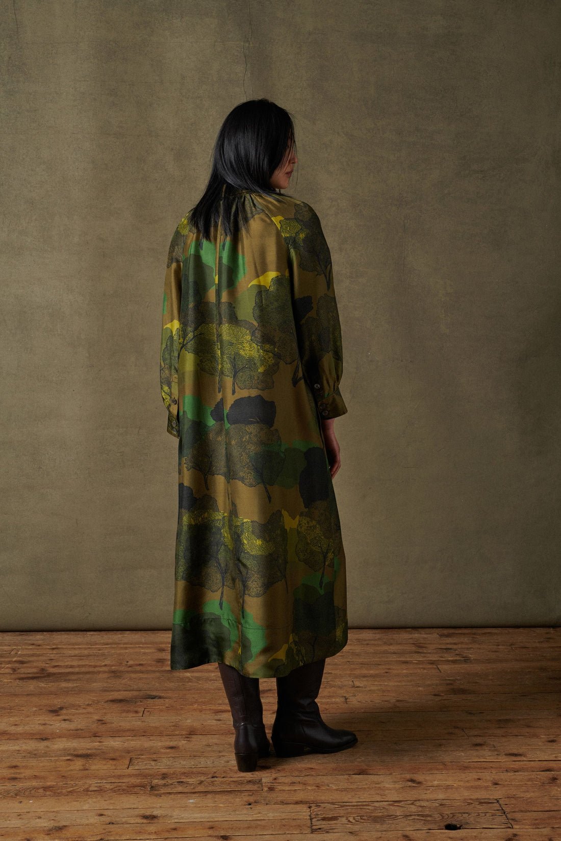 Robe en soie imprimée kaki