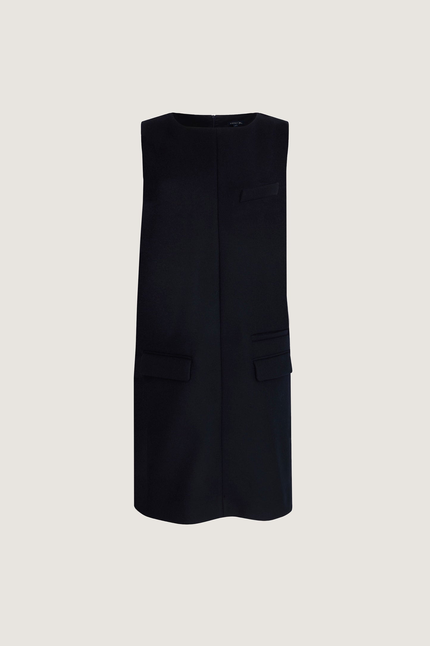Robe courte en drap de laine - Coupe trapèze- Encolure ronde- Pinces devant- Ouverture zip invisible au dos