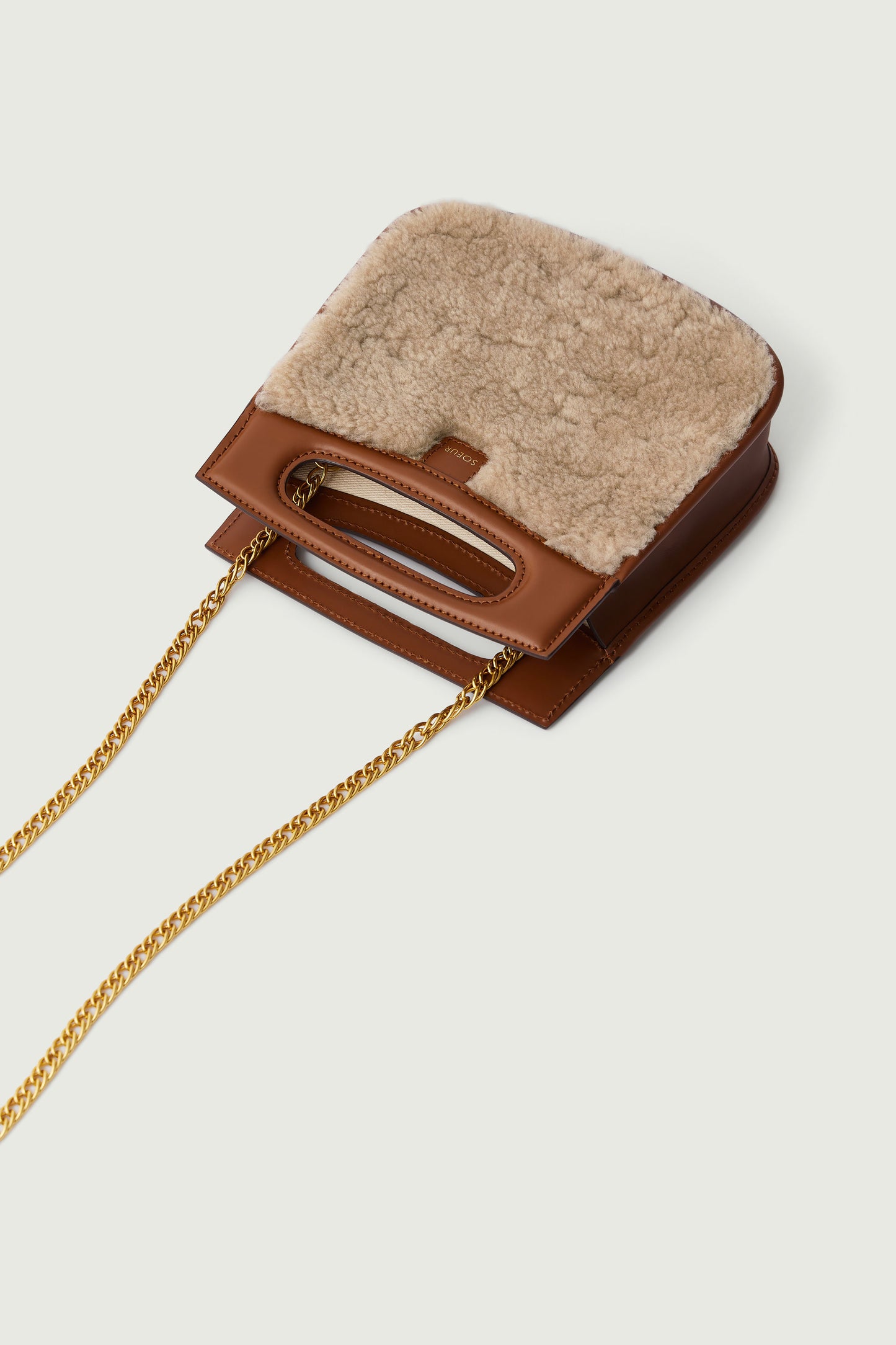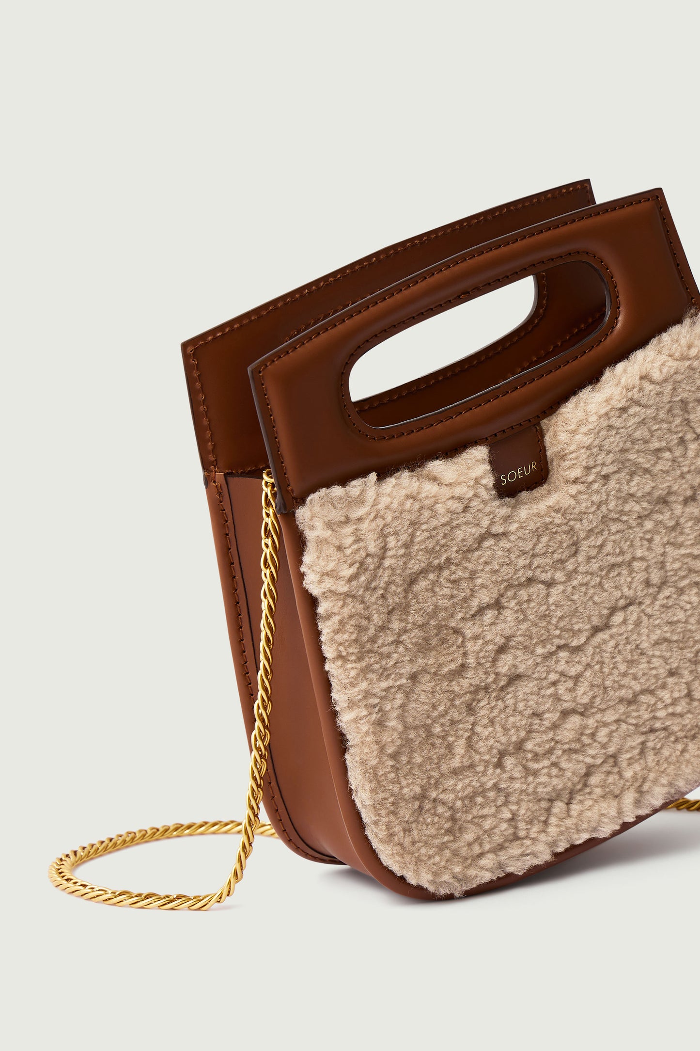 sac cheri mini Petit sac en cuir lisse naturel et shearling sable