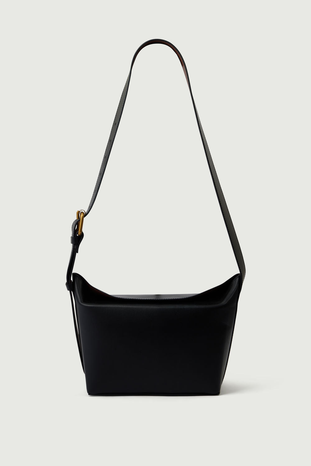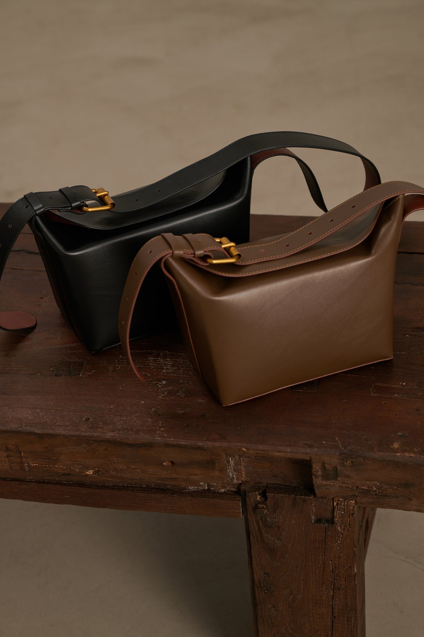 sac solstice Sac bicolore en cuir lisse noir/cognac